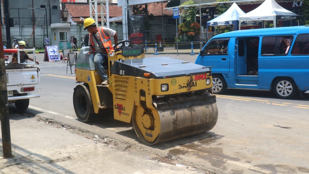 Alat perataan jalan atau road roller merupakan perangkat penting dalam proses pembangunan dan pemeliharaan jalan. Gambar yang Anda berikan merupakan contoh nyata bagaimana alat ini digunakan dalam proyek perbaikan jalan di area perkotaan. Dengan kemampuan memadatkan dan meratakan berbagai lapisan konstruksi, roller berperan vital dalam menciptakan jalan yang kuat, aman, dan tahan lama.