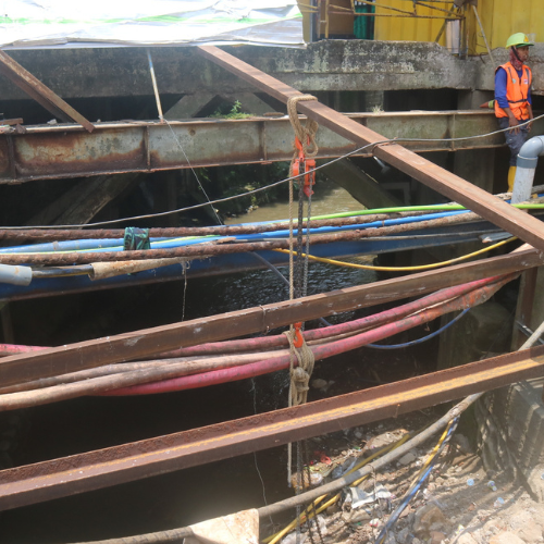 Jembatan merupakan salah satu infrastruktur penting yang menjadi jalur transportasi, aliran logistik, dan penghubung aktivitas masyarakat. Kondisinya harus selalu stabil dan aman, terutama bila berada di atas aliran air seperti sungai atau saluran drainase. Salah satu kegiatan penting dalam pemeliharaan jembatan adalah pengecekan kondisi air serta struktur yang berada di bawah jembatani lokasi Tajur Halang.
